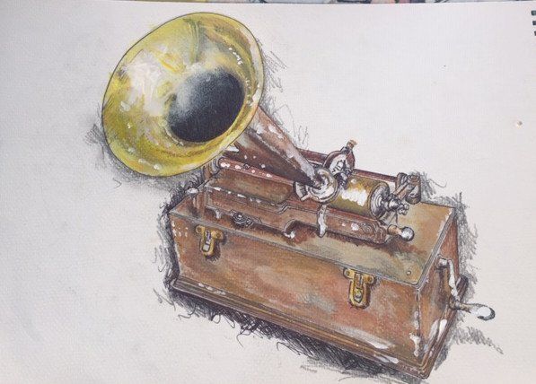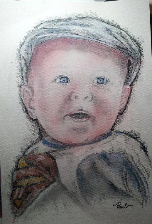 coloured pemcil, fine line black pen and acrylic pain and water colours